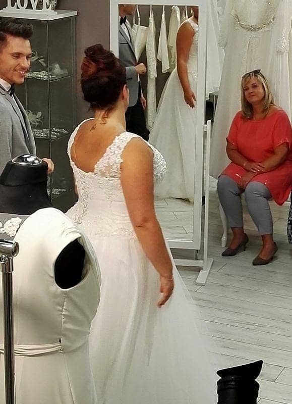 Na szczęście dysponujemy wieloma sukniami dostępnymi od ręki z “wieszaka” i udało się dobrać idealną suknię.