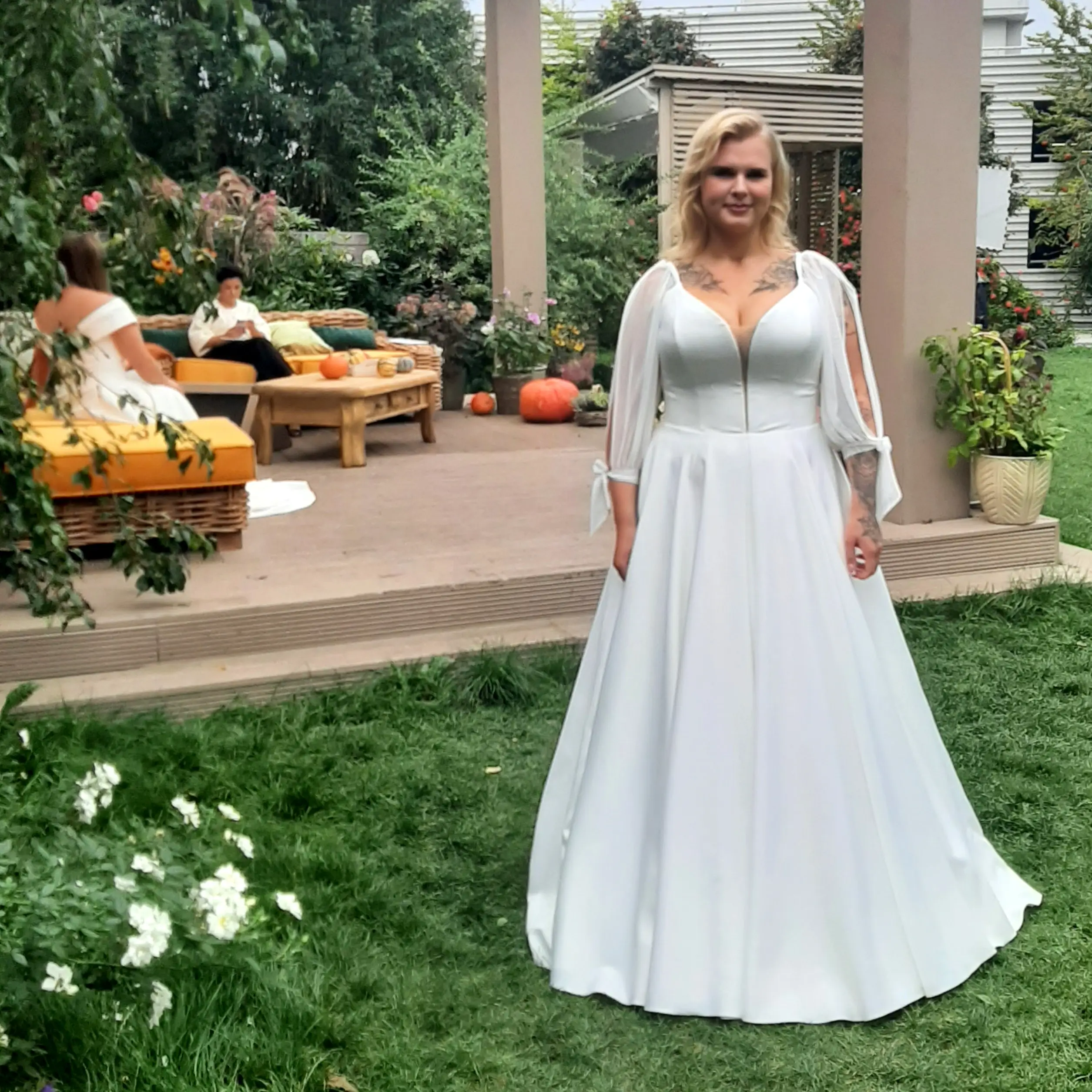 W programie o tematyce ślubnej, “Sposób na suknię” kręcony częściowo w Salonie Ideo Design 🙂 Bohaterka mierzyła 3 modelujące suknie w różnych stylach: lejącą muślinową z koszulką ecru z długim rękawem zdobionym koronką, nowoczesną geometryczną gipiurę z dołem z zakładek z kieszeniami, tiulową księżniczkę mieniącą się srebrnymi cekinami.